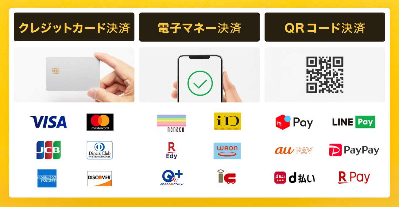 【カード、電子マネー、コード決済が可能になりました。】現金以外の様々な決済方法が利用できます。